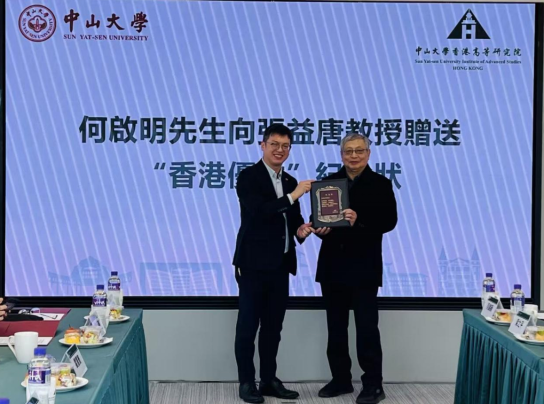 2026 年 1 月 8 日下午,中山大學霍英東基金會講席教授張益唐先生授予儀式在香港科學園中山大學香港高等研究院舉行。儀式由中山大學香港高等研究院院長徐安龍教授主持,中山大學校長高松院士、副校長鄭躍教授,霍英東基金會董事霍震寰先生,以及香港特別行政區政府勞工及福利局副局長何啟明先生等各界領導嘉賓出席儀式。
